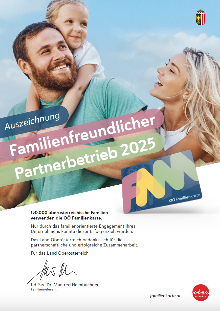 Diese Auszeichnung bestätigt unser Engagement für familienfreundliche Werte und unsere Unterstützung für Familien in Oberösterreich.